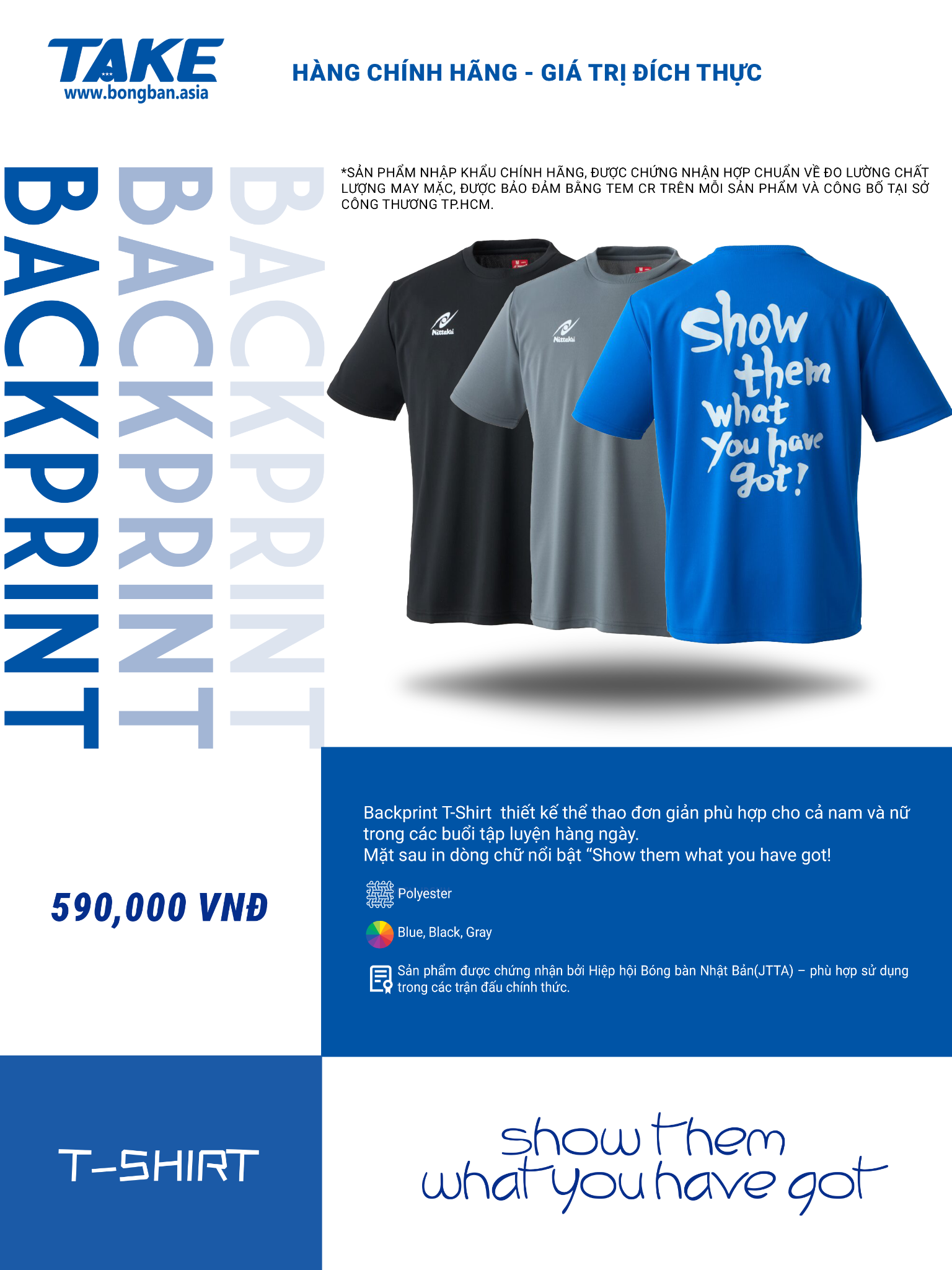 Mặt sau in dòng chữ nổi bật “Show them what you have got!” Hãy thể hiện khả năng của bạn.