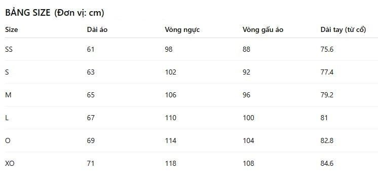 Quần áo, giày, vớ | Không | Đổi size trong 07 ngày |