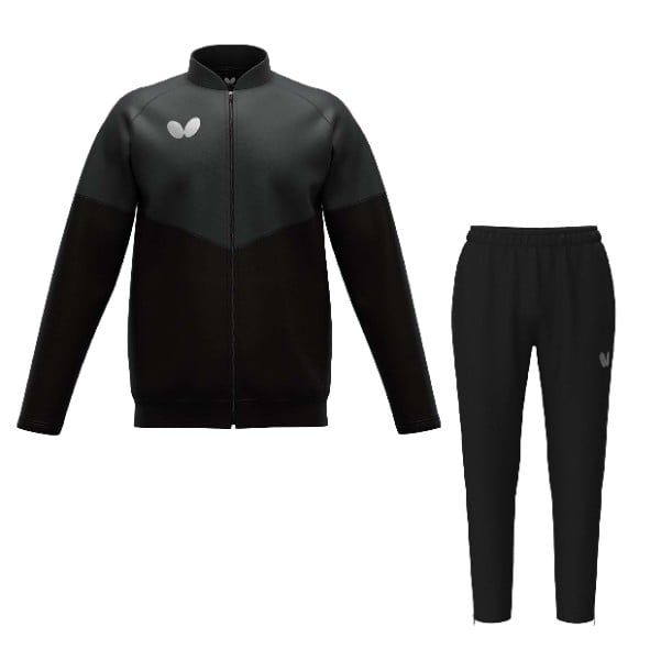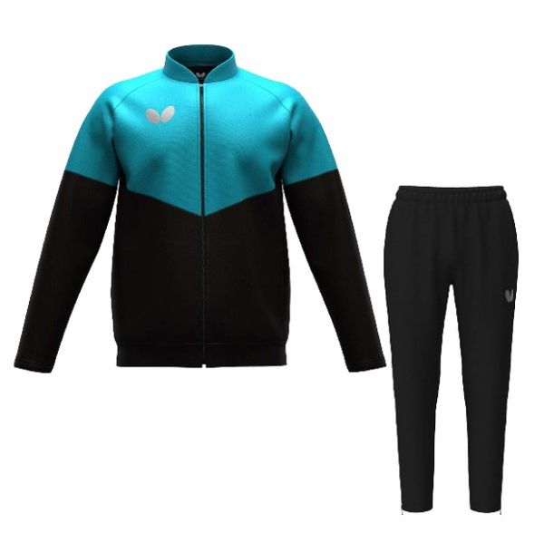 Thiết kế cổ áo đứng, tay dài và khóa kéo dọc từ cổ áo đến vạt áo. Logo Butterfly màu trắng hình cánh bướm ở ngực trái.