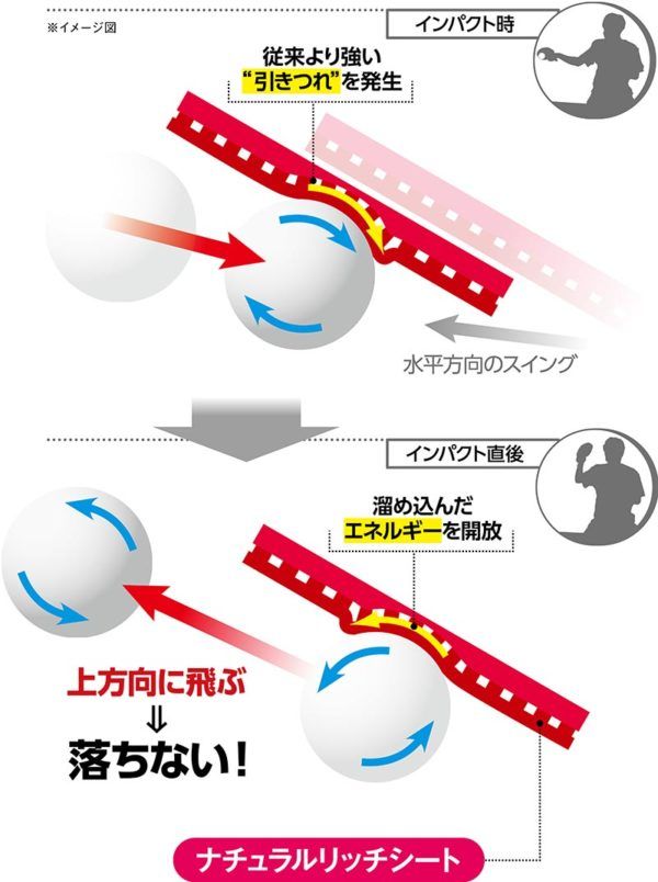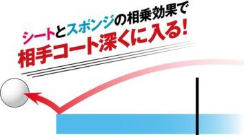 Thành phần cao su thiên nhiên cao, mật độ cao su thiên nhiên được bao phủ rộng khắp mặt sheet, nên dù mặt vợt tiếp xúc nhẹ, uy lực tác động lên bóng vẫn rất lớn.