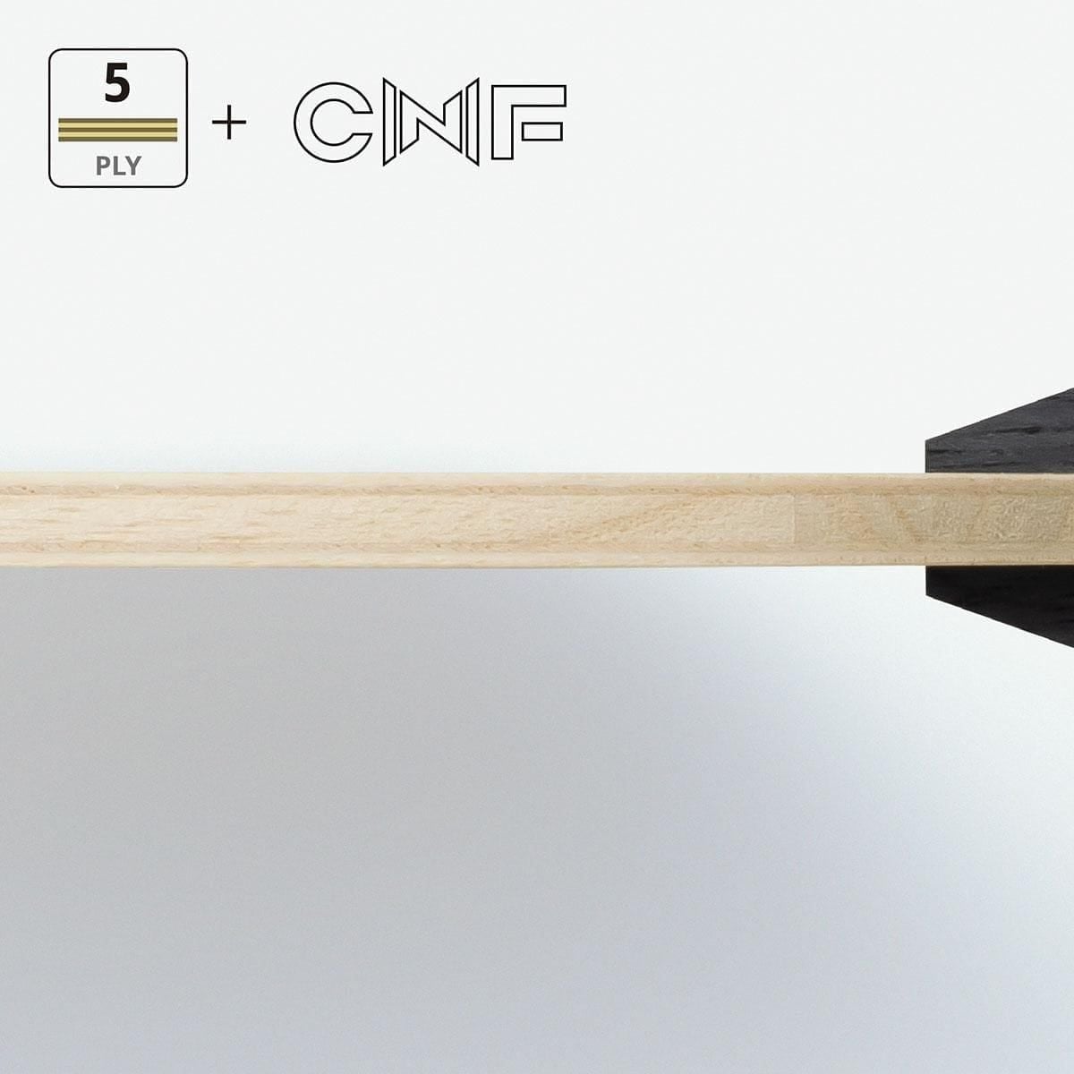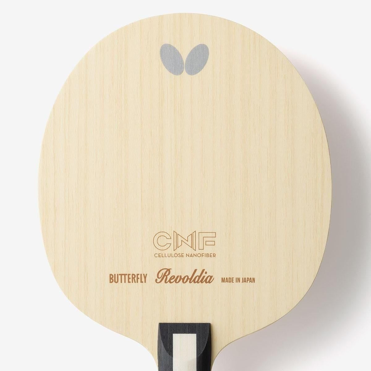 Cốt vợt REVOLDIA CNF - Sự kết hợp tuyệt vời giữa 5 lớp gỗ và 2 sợi Cellulose Nano Fiber bằng công nghệ mới Nano, vừa có thể tạo ra lực đẩy lớn vừa khống chế độ rung ở mức thấp nhất, tốc độ chạm bóng đầy uy lực với thời gian lưu bóng lâu.