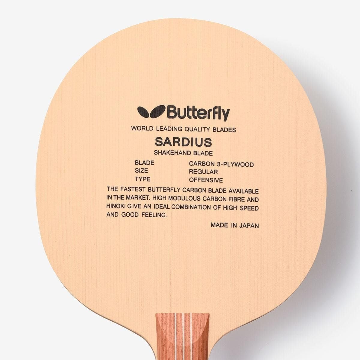 Sardius huyền thoại được Hãng Bóng bàn Butterfly nghiên cứu và sản xuất từ năm 1988 tại Nhật Bản với tính năng hỗ trợ lực nhờ 3 lớp gỗ đan xen kẽ 2 lớp sợi Carbon nằm gần lớp gỗ hinoki ngoài, độ dầy 7.2mm nên Sardius được mệnh danh là cốt vợt có sức mạnh và uy lực tấn công mạnh nhất trong các dòng sản phẩm của Hãng Butterfly cho đến nay