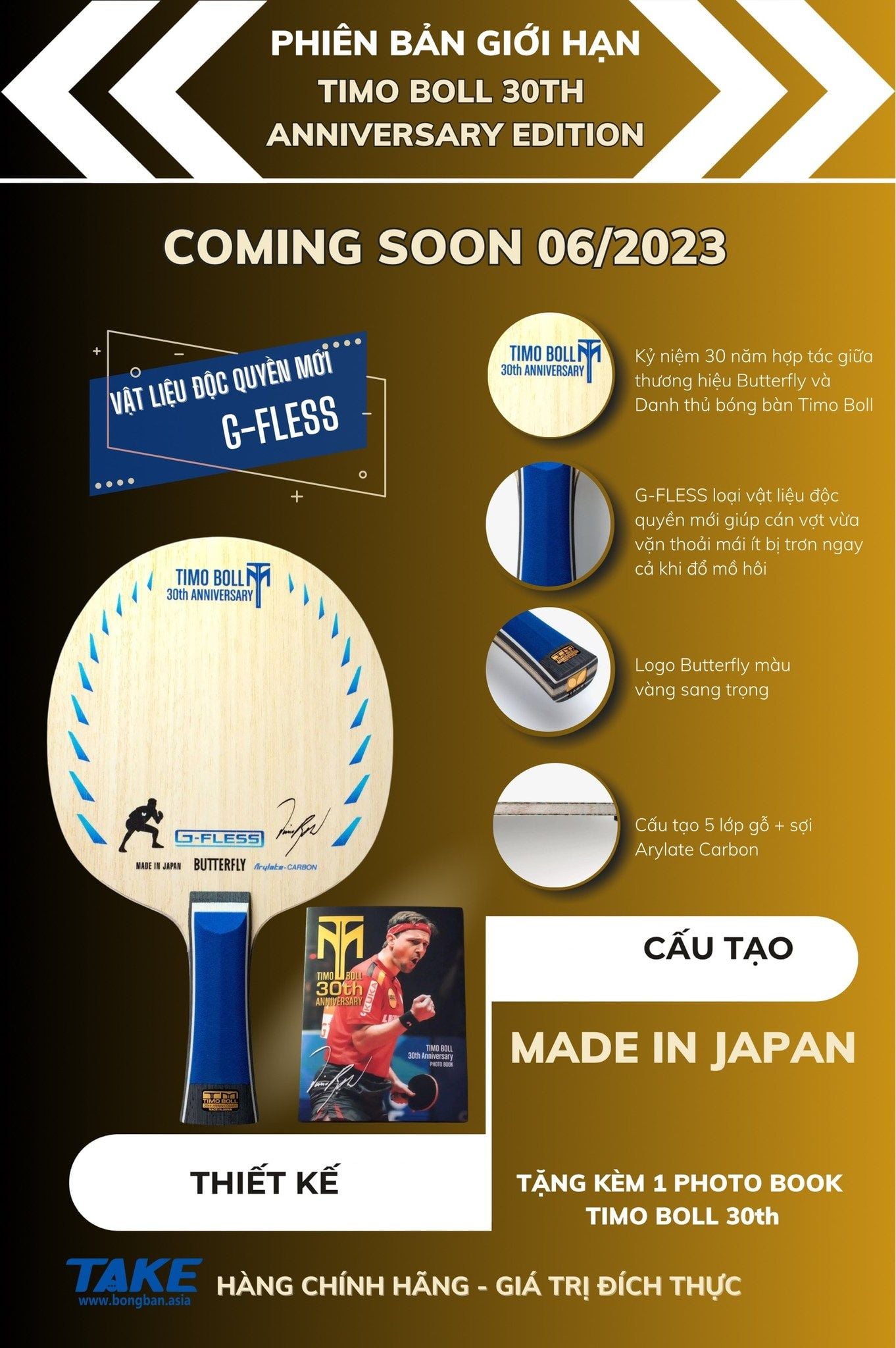 Cốt vợt Timo Boll 30th Anniversary được sản xuất giới hạn nhân dịp kỷ niệm 30 năm hợp tác giữa thương hiệu Butterfly và Danh thủ bóng bàn Timo Boll.